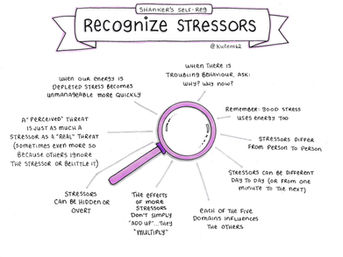 There are a variety of ways we can facilitate self-regulation in our students. Kristin Wiens (2017) illustrates some of these in “Features of Self-Regulating Learning Opportunities.” To offer students ways to manage their responses to stress, we can: